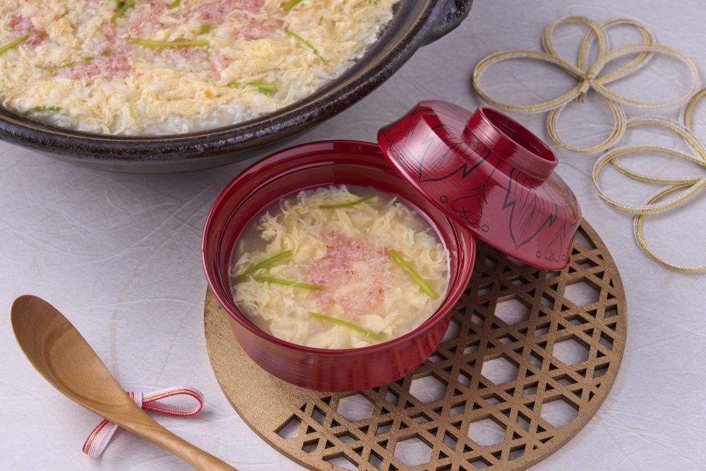 カニの出汁に紅ズワイガニの身を加え、ふんわりと卵を溶いています。食事の締めの一品としておすすめします。