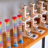 是一邊感受樹木的溫暖,一邊演奏音樂的房間。如果玩鋼琴、鋼筋等有聲音的玩具的話,那裡已經是森林的音樂會了。請享受治愈心靈的聲音。